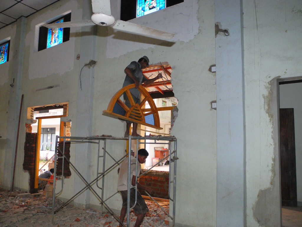 Stain glasses installed, installing of new door arches and filling church floor