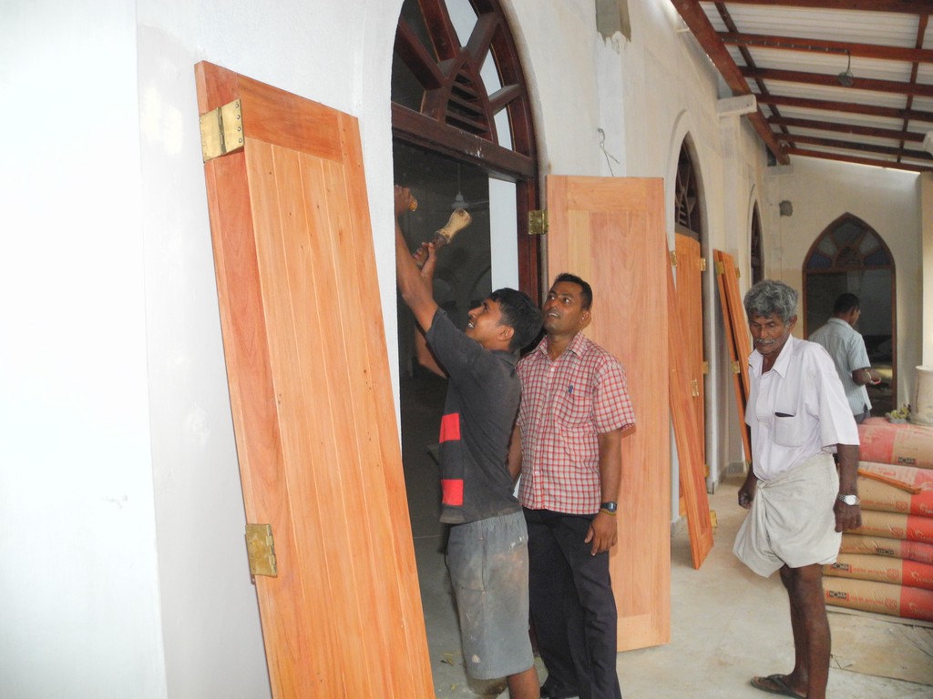 Installing floor tiles of the church, painting outer church final coat